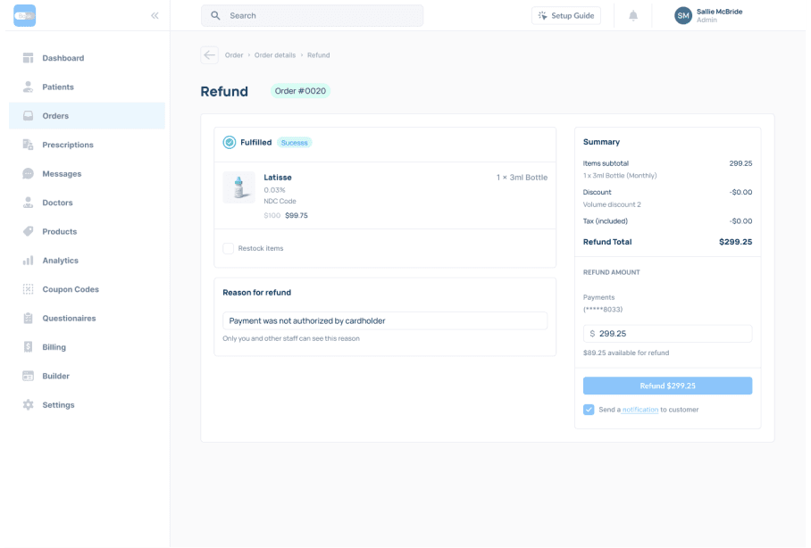 With Bask's order automation, you can effortlessly manage the entire process of treatments through your storefront. Patients are kept informed at every step, from order placement to doorstep delivery, ensuring a seamless experience. You and your patients stay connected with real-time updates and tracking, providing peace of mind and enhancing patient satisfaction.